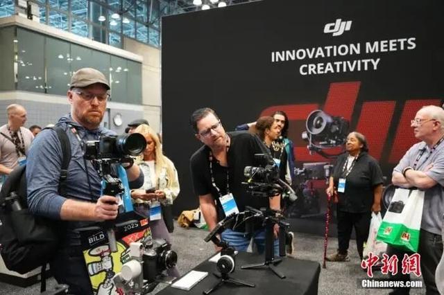 贵寓图:好意思国纽约影像展览会上,大疆展位的相机手合手褂讪器等开荒受到存眷。 中新社记者 廖攀 摄
