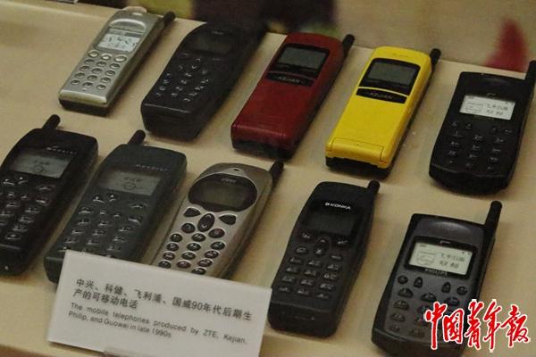 展柜里20世纪90年代后期坐褥的可转移电话