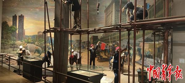 使命主谈主员致使平直在馆内建了个“工地”。