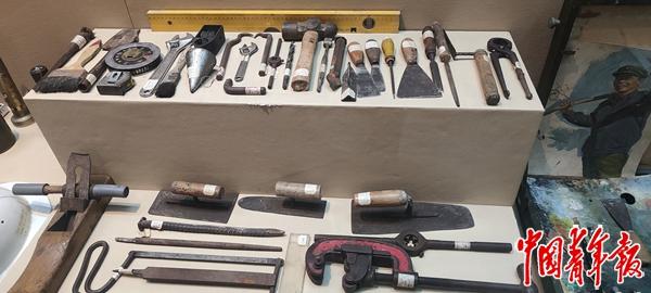 展柜中基建工程兵使用的多样器用和画箱