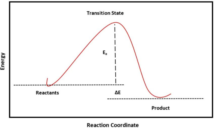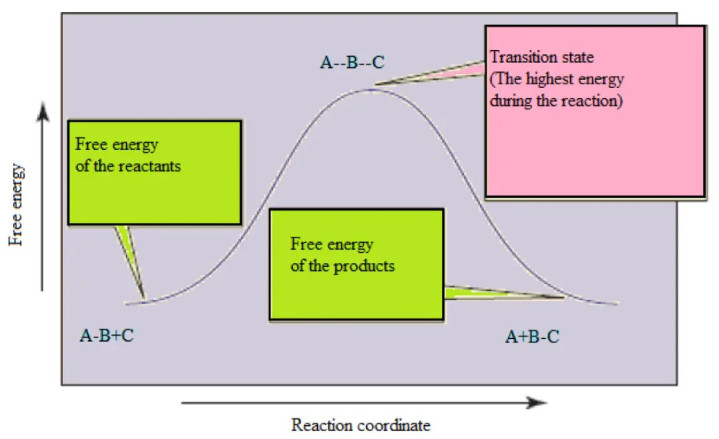在一个反应的能量坐标图中,反应物和家具区分处于两个能量山谷。要从反应物山谷到达家具山谷,反应体系的能量必须沿着反应旅途攀升,达到一个能量最高点,这个最高点即是所谓的过渡态。活化能,在物理图像上,即是反应物的平均能量与这个过渡态能量之间的差值。