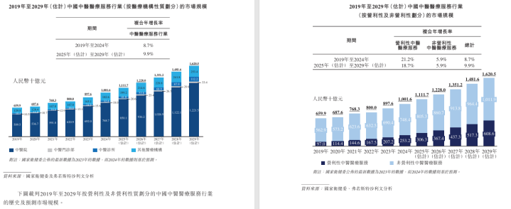 在特殊分布的中医就业商场,公司已确立明确的龙头上风:按2024年总门诊东说念主次及入院东说念主次计,是中国非公立中病院医疗就业行业中最大的中病院集团,商场份额为1.7%;按同庚中医医疗就业总收入计,名循序二,商场份额0.2%。