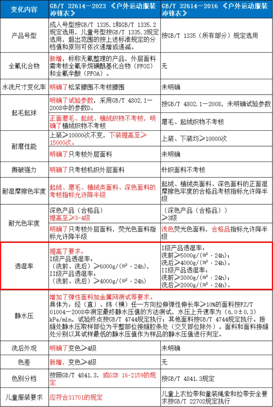 《户外通纳降装冲锋衣》次第新旧版块对比/图源:GTTC广检