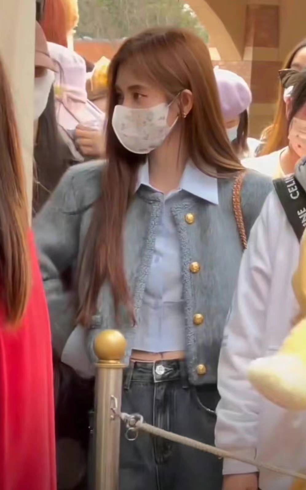 鞠婧祎穿水狗尾续绒外衣内搭衬衫配牛仔裤,在早春的迪士尼游玩,这套造型从简前锋,御寒又自得。上短下长的单品版型很深湛,还能应用宽松的裤管修饰腿型,显瘦显高。
